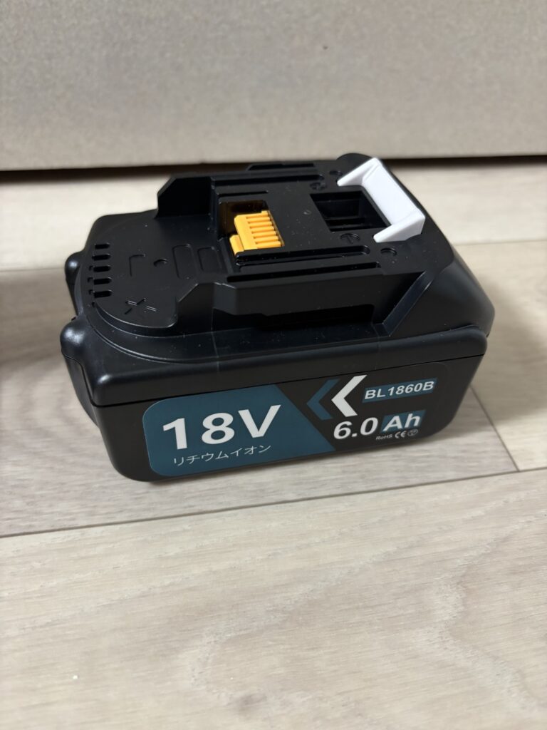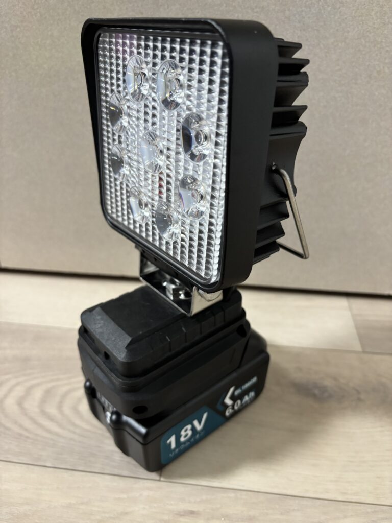 このライトはバッテリーが外付けでマキタのバッテリーが適応となっています。なのでマキタの互換バッテリーも大丈夫と思いセットで購入しました。