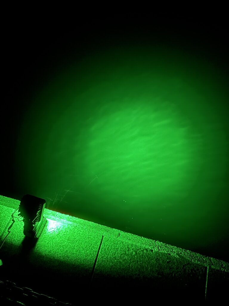 今回導入した新兵器、緑集魚灯を設置して・・・