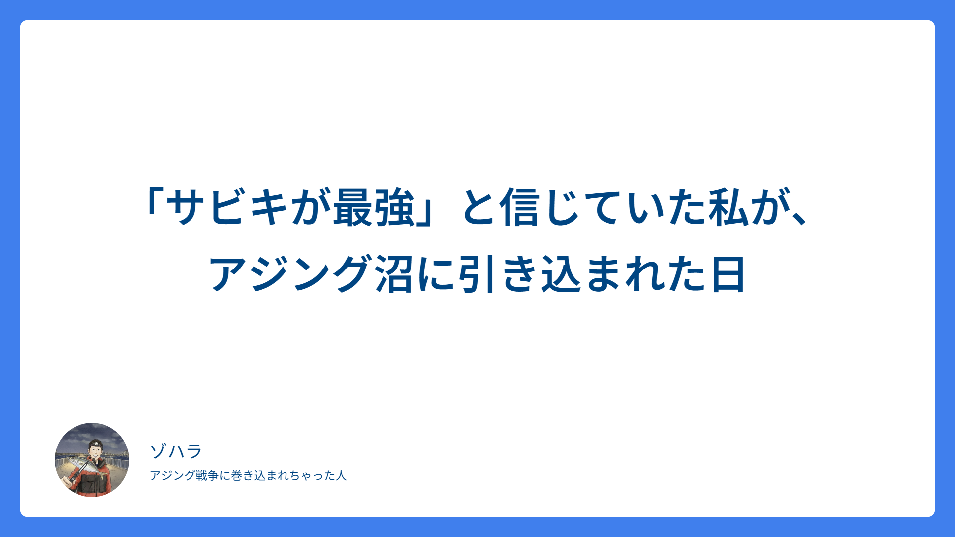 CATEGORY Uncategorized 【アジング釣行記】春の兆しあり!?いつもより活性のいい根魚たち 2026/03/05 2026.03.09 Uncategorized zohara0407 ゾハラのアジング 【アジング釣行記】今年初遠征の準備 2026.02.24 Uncategorized zohara0407 ゾハラのアジング 「カウントは目安」カウントと沈下速度の関係 2026.02.24 Uncategorized zohara0407 ゾハラのアジング 皆さんには「思い出のジグヘッドとワーム」がありますか?ー5年間での私の成長と変化ー 2026.02.22 Uncategorized zohara0407 ゾハラのアジング アジング=手軽に楽しめるのにハマったら底なし沼のライトゲーム 2026.02.19 Uncategorized zohara0407 ゾハラのアジング カウントは「正確な1秒」じゃなくていい?アジングにおけるカウントとその役割 2026.02.15 Uncategorized zohara0407 ゾハラのアジング 余り糸カット不要!?私がオススメする結束方法‐ジグヘッドの結束編‐ 2026.02.14 Uncategorized zohara0407 ゾハラのアジング ガイド抜け抜群!?私がオススメする結束方法‐リーダーの結束編‐ 2026.02.13 Uncategorized zohara0407 ゾハラのアジング 「サビキが最強」と信じていた私が、アジング沼に引き込まれた日 2026.02.01 Uncategorized zohara0407 ゾハラのアジング ブログ始めました!管理人のゾハラです。 2026.01.23 Uncategorized zohara0407 ゾハラのアジング